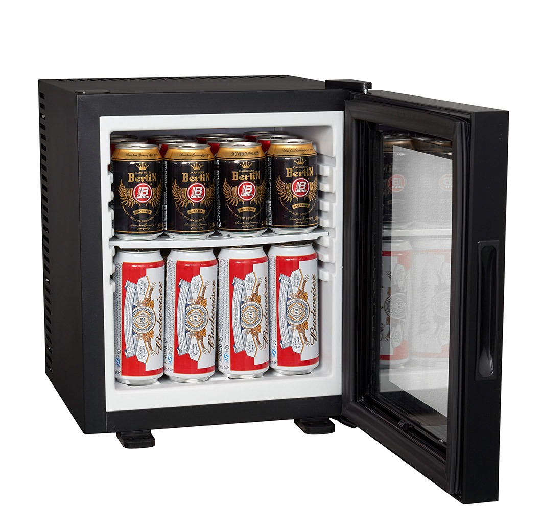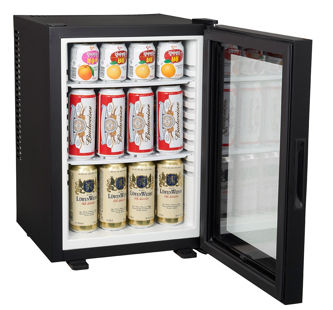 This silent minibar offers high-performance absorption cooling with absolute quiet – a perfect fit for guest rooms and suites. Available in 35L capacity, it features adjustable interior shelves, thermostat control, and a sensor-activated LED light for added convenience. With a robust steel body and refined, functional design, it can be installed built-in or used freestanding. Energy efficient and maintenance-free, this minibar ensures reliable cooling between +4 and +14 °C, making it a premium choice for hospitality environments.